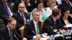 وزیران خارجۀ ناتو، شرکایشان در ماموریت حمایت قاطع و نیز صلاح الدین ربانی وزیر خارجۀ افغانستان در مورد چگونگی تقویت امنیت افغانستان بحث میکنند.