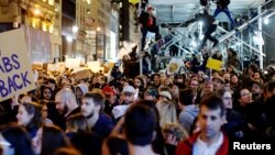 همچنان معترضان در نیویارک در مقابل هوتل بین المللی ترمپ شعار دادند.