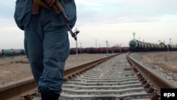 این خط آهن ترکمنستان و افغانستان، در داخل خاک افغانستان ۳.۵ کیلو متر است که از سوی ترکمنستان ساخته شده و از منطقه "آته مراد" ترکمنستان تا بندر آقینه افغانستان ادامه دارد.