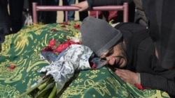 جسد یکی از قربانیان حمله انتحاری بر موتر کارمندان تلویزیون خصوصی طلوع در سال ۲۰۱۶