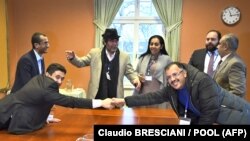 وزیر خارجه یمن و رهبر هیئت حوثیها بطور سمبولیک در پایان مذاکرات روز گذشته با هم دست دادند.